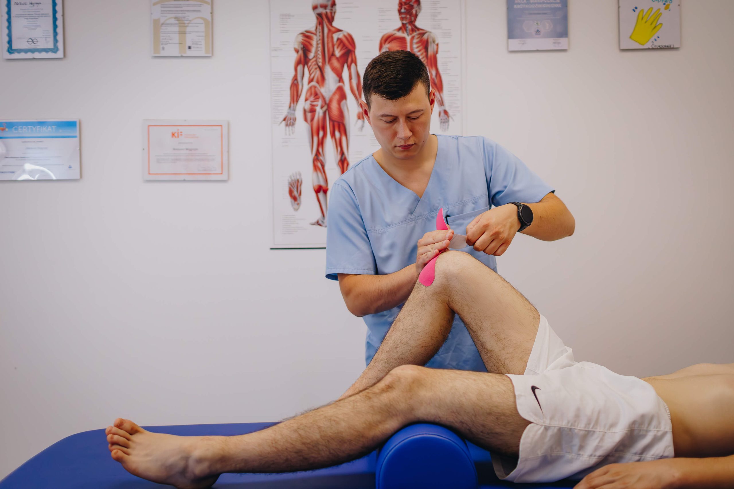 Stosuję taping, aby zmniejszyć ból i przyspieszyć procesy regeneracyjne po skręceniach, stłuczeniach czy naderwaniach mięśni.